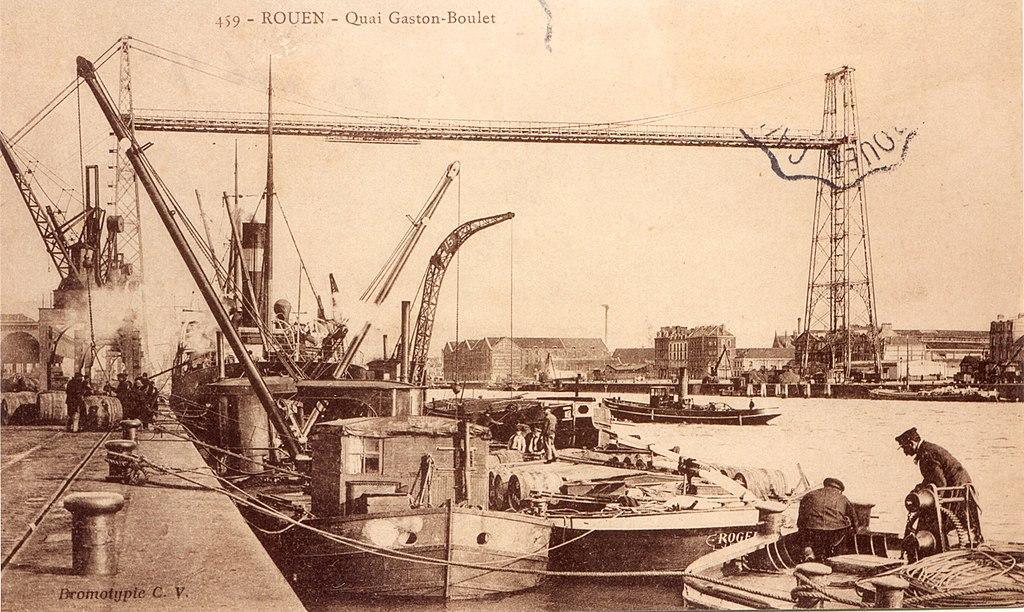 Rouen 1903 : Le quai Gaston Boulet et le pont transbordeur
